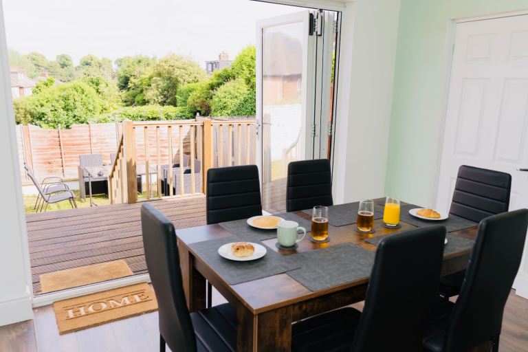 • Patio doors open out to the garden decking — ideal for indoor-outdoor dining or enjoying fresh air.