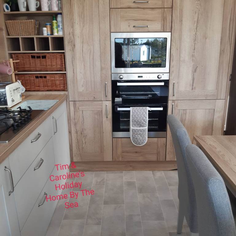 Our kitchen/dining room has a full size integrated oven, microwave, fridge/freezer, 5 burner hob, washing machine, dishwasher and dining table and chairs for 4