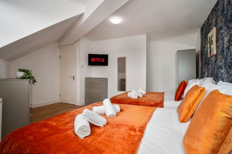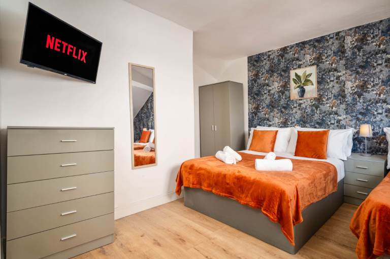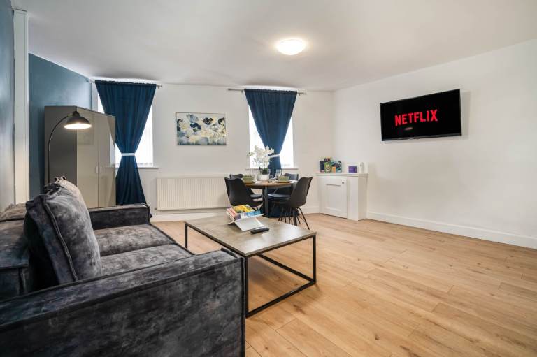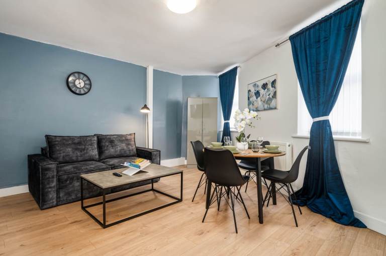 This bright and modern duplex apartment spans two floors and sleeps up to 8 guests comfortably, making it ideal for contractors, families, football fans, or anyone needing quality accommodation in Liverpool.