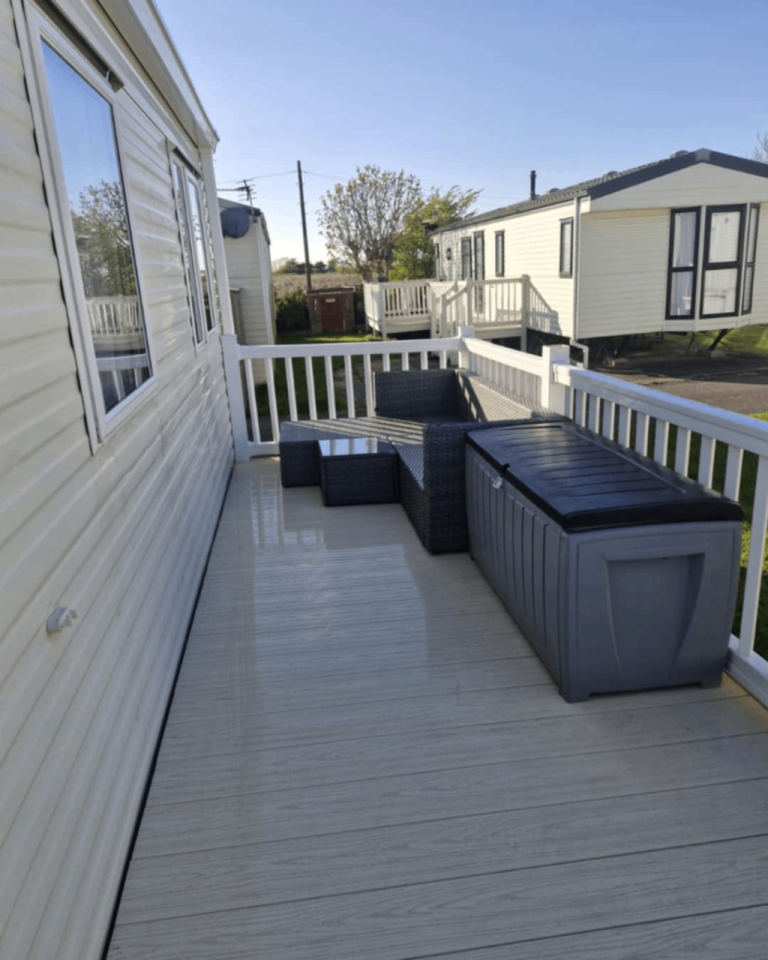 Comes complete with 50 inch smart TV & DVD player, Wi-Fi & gas central heating. It also has decking with furniture. It includes ironing board /iron, microwave & fridge freezer.
