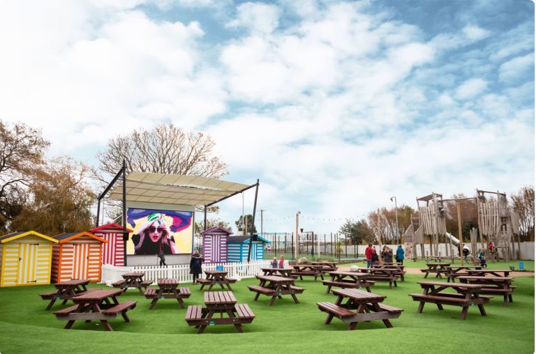 OUTDOOR ENTERTAINMENT CENTRE WITH GIANT SCREEN ACTIVITIES FOR ADULTS AND CHILDREN