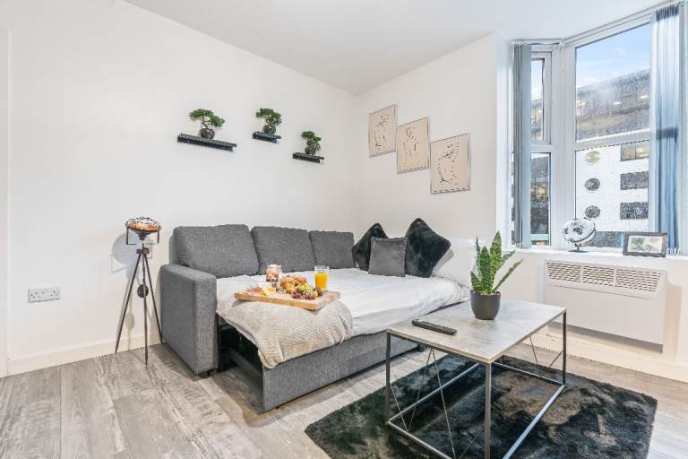 - A cushy pull-out sofa bed in the living room