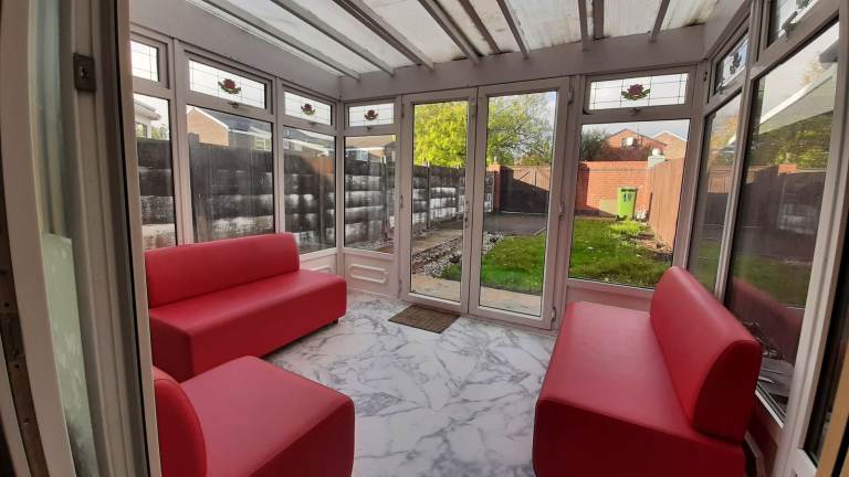 - TV (free sat) with selection of dvds 🎬