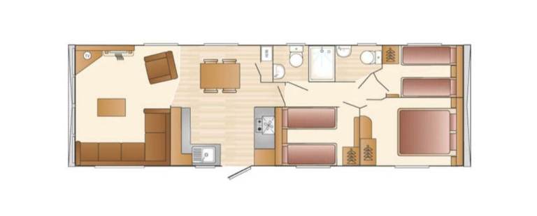 Beautiful 3 bedroom caravan (1 double/2 twin) situated in Greenan Village area of Haven's Craig Tara holiday park, South Ayrshire. Situated within easy walking distance to the complex, play park and the beach in a quiet cul-de-sac surrounded by plenty of green space - ideal for children.
