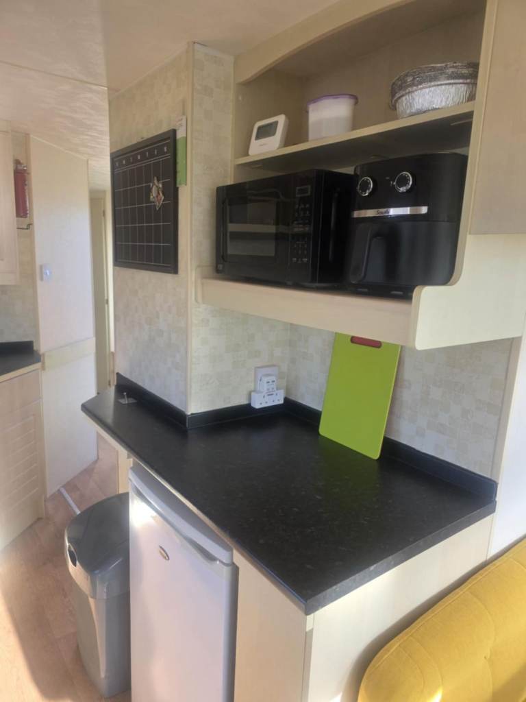 Full self-catering kitchen with oven, microwave, airfryer, fridge with small freezer.