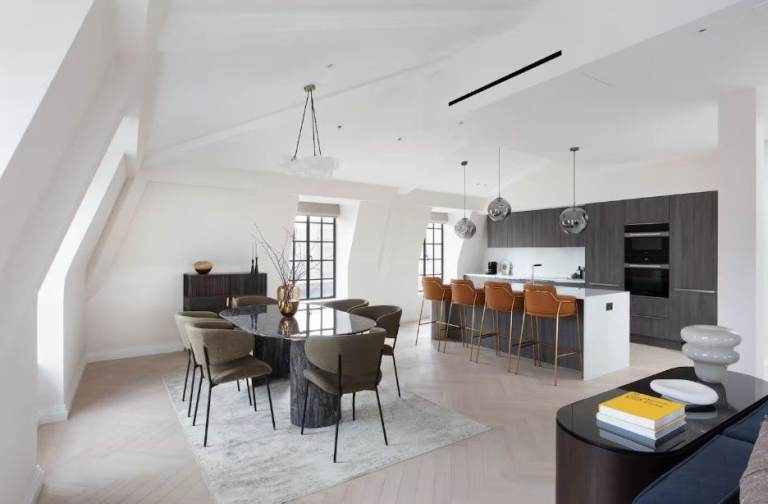 This luxurious six-storey property is located in a peaceful, residential part of Westminster. Inside the striking Georgian red-brick building, you’ll find beautifully-appointed studio, one, two and three-bed apartments along the mood-lit corridors, with the property’s penthouse taking centre stage on the sixth floor. With deluxe detailings throughout, these apartments feature herringbone flooring, large crittal windows and premium Miele appliances. The bathrooms boast large walk-in rainfall showers, free-standing baths and illuminated vanities. Open-plan living-dining areas surround bespoke kitchens with a marble-top breakfast bar, perfect for entertaining. The penthouse offers a separate study, an integrated wine cooler and spectacular views of Westminster through the triple-aspect windows. With access to a concierge and weekly housekeeping included, you’ll have more time to explore your new neighbourhood whilst your apartment is made ready for you to come home to.