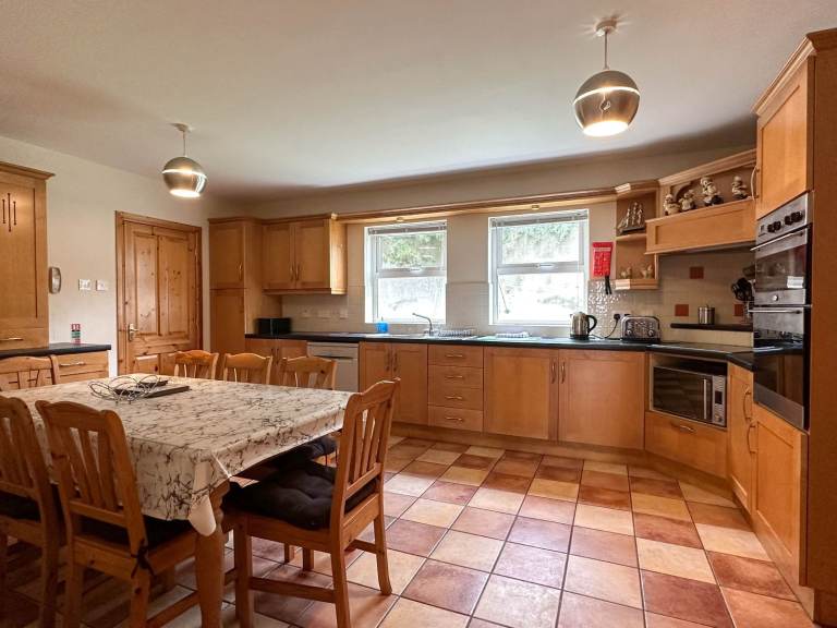 5 Bedroom Modern House, All mod cons - Microwave, dishwasher, washing machine, tumble dryer, 42 “ TV, DVD player, etc., well equipped kitchen, 3 bathrooms - 1 downstairs , 5 Double bedrooms (1 en-suite) (1 downstairs), all new memory foam beds. (Sleeps 10). Fully enclosed back garden with patio accessed from dinning room. Large secure garage.Within walking distance to the Portstewart promenade, Strand beach, public transport and local supermarket. An ideal location to explore the North Coast, the Giant's Causeway, Dunluce Castle, Carrick-a-Rede Rope Bridge, the world famous Bushmills Distillery and several championship golf courses. Northern Ireland Tourist Board Registered and Certified. Price includes OFCH, electric and bed linen. Free Wifi. Travel cot and high chair available on request.