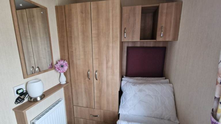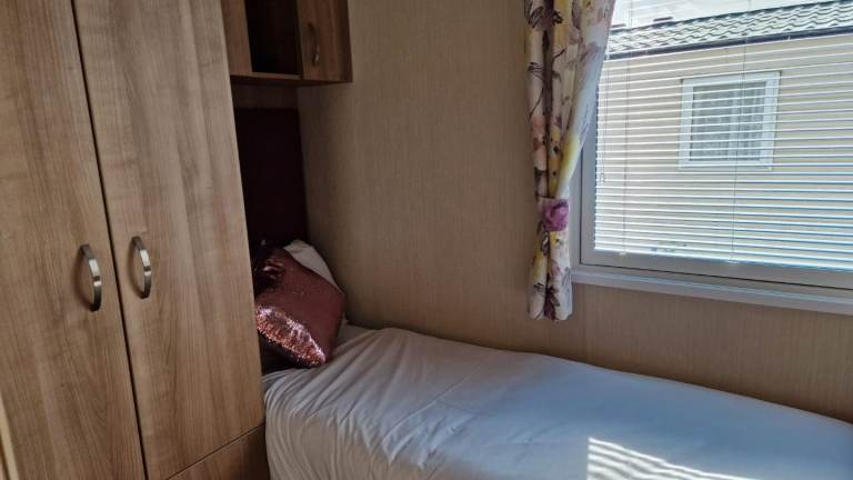This is a 2 bedrooms caravan but sleeps up to 7 people thanks to a lovely bunk bed in the twins room and a pullout sofa bed in the living room.