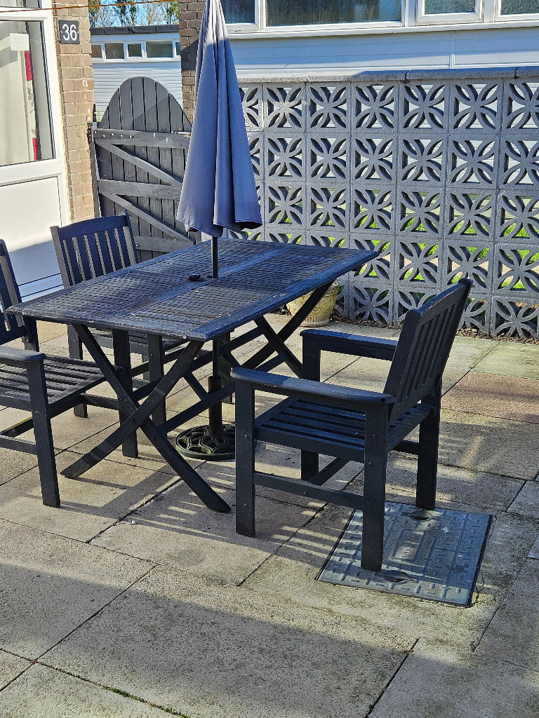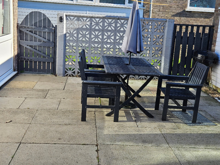 THERE IS A PATIO SET .IDEAL TO SIT OUT AND RELAX