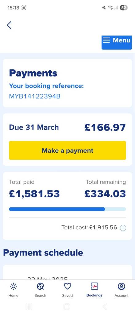 As you can see am selling my holiday there is 2 payments left buy to pay for name transfers and last two payments with on the beech this is generally not a scam it's a holiday for 2 adults as you can see i paid over £1000 am only asking for £550 person who buys can come to my house to do the transfers