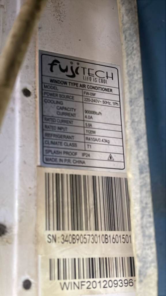 Posting for under a monthUsed FUJITECH window AIRCON FW-09F 9000 BTU Casement Aircon