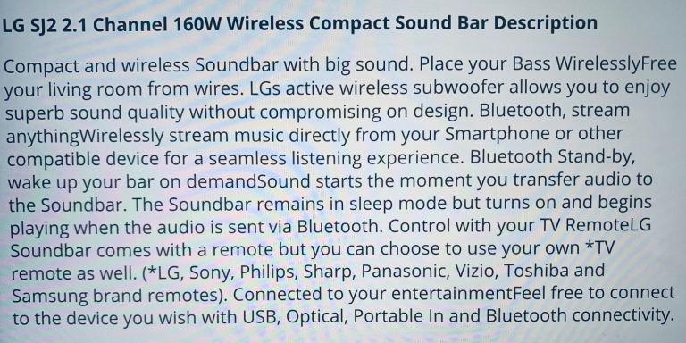 Posting for 5+ monthsLG 2.1 Channel 160W Wireless Compact Sound Bar and Sub Woofer Bass Speaker