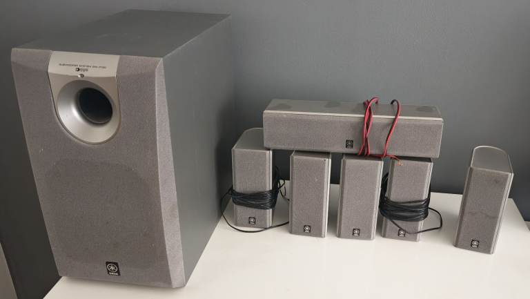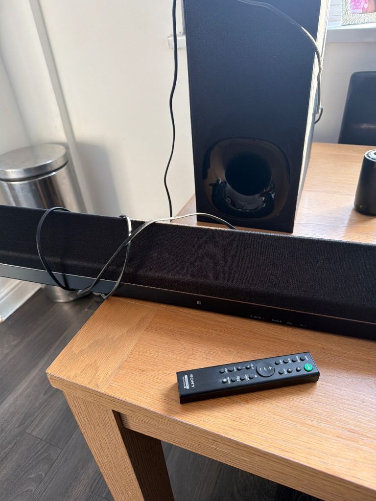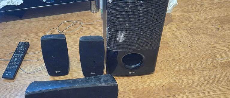5.1 surround sound 300watt sub woofer all other,s 140 watt there is a speaker bar aswell just need to get it all works 900 watt in total remote LG lovely sound