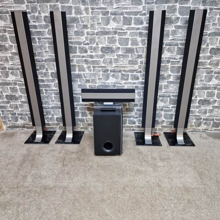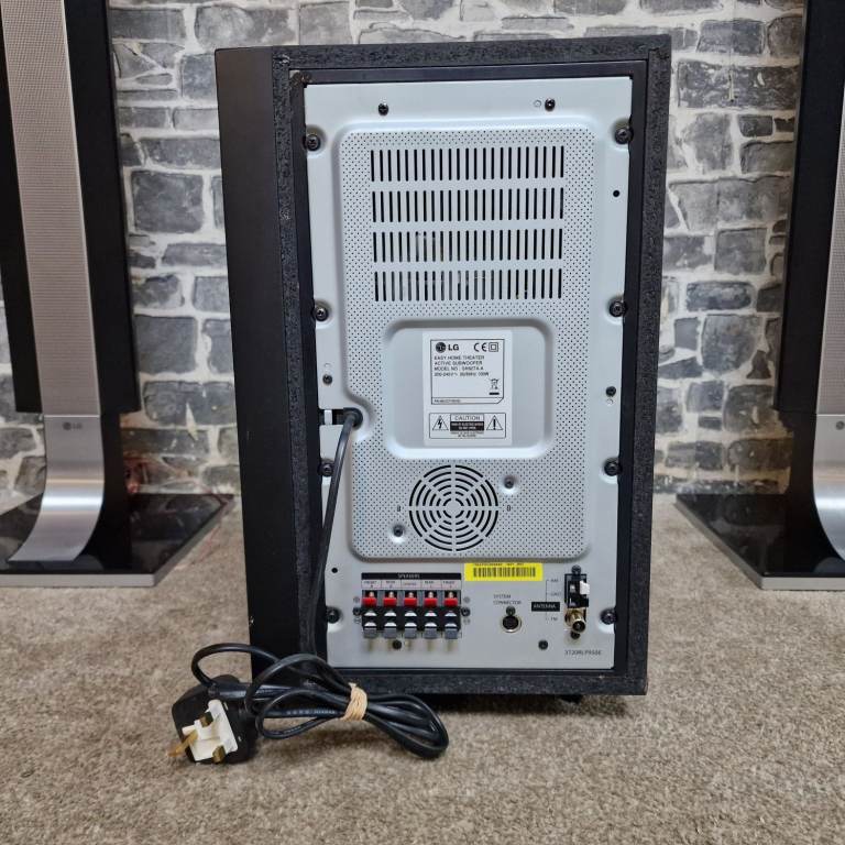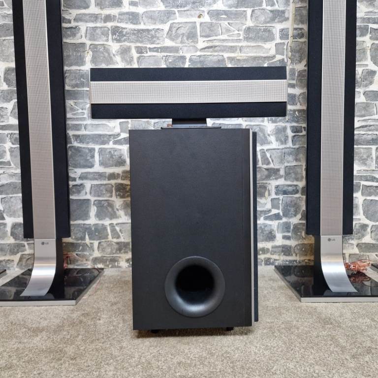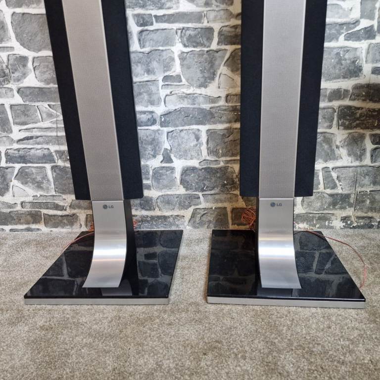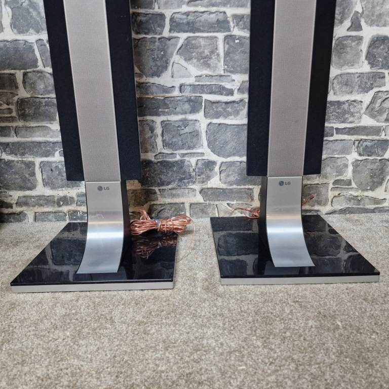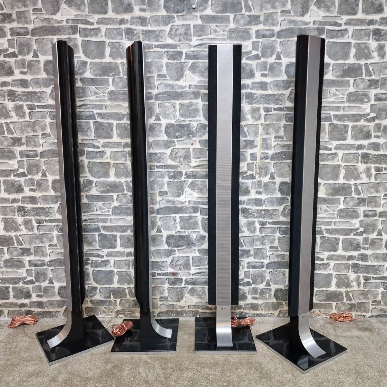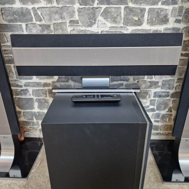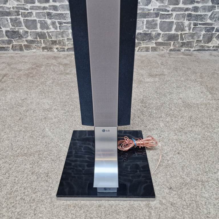 LG home cinema speaker system in great condition, including four tall speakers, centre speaker, active subwoofer and remote. Stylish black and silver design with glass bases. All speakers and subwoofer are present and clean.