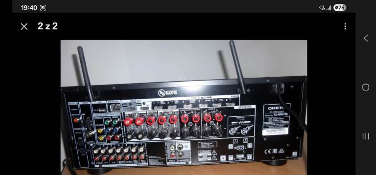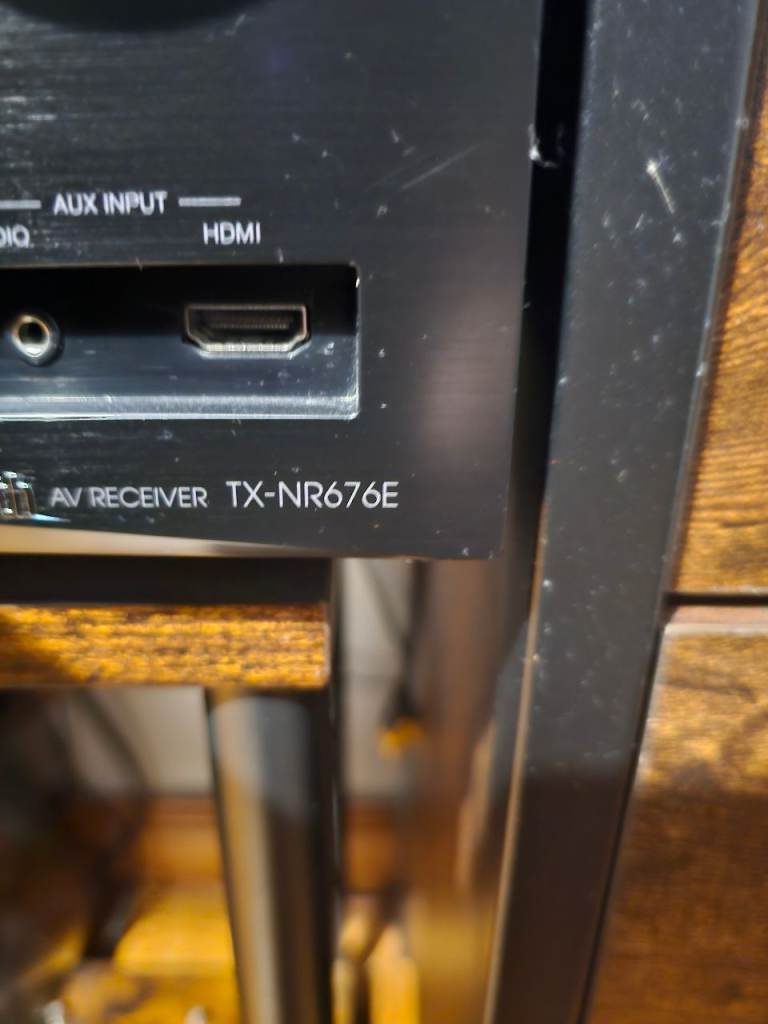 -NR676E is a 7.2 channel network A/V receiver with 165 W/Ch power output (6 ohms, 1 kHz, 1% THD, 1 channel driven). It supports 4K HDR pass-through (HDR10, Dolby Vision), DTS:X, and Dolby Atmos, and includes network connectivity features like Bluetooth 4.1, Wi-Fi, and Ethernet. Key connections include 7 HDMI inputs and 2 HDMI outputs, a phono input, and two subwoofer pre-outs.