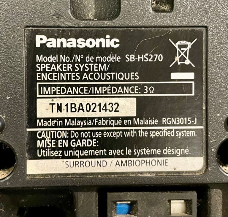 Panasonic 5.1 Surround Sound Speakers (from system SC BTT370)