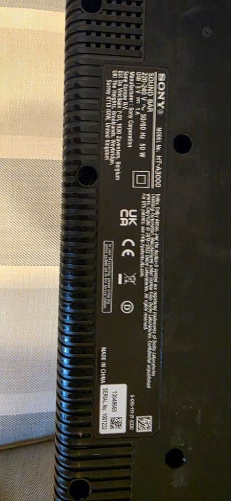 The Sony HT-A3000 Soundbar is a high-quality audio device that offers a 3.1 channel system configuration for immersive sound experience. It features Dolby TrueHD, Dolby Digital Plus, Dolby Atmos, and Dolby Digital surround sound formats, providing crystal clear and powerful audio. The sleek black rectangular design, along with its smart home compatibility with Alexa and Google Assistant, makes it a versatile and modern addition to any home cinema setup. With Bluetooth and HDMI connectivity, this Sony soundbar allows for easy and versatile charging, ensuring a seamless entertainment experience.