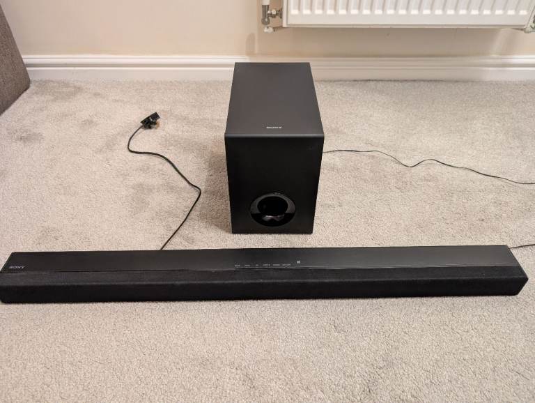 Soundbar with subwoofer and all leads needed including optical lead to TV..