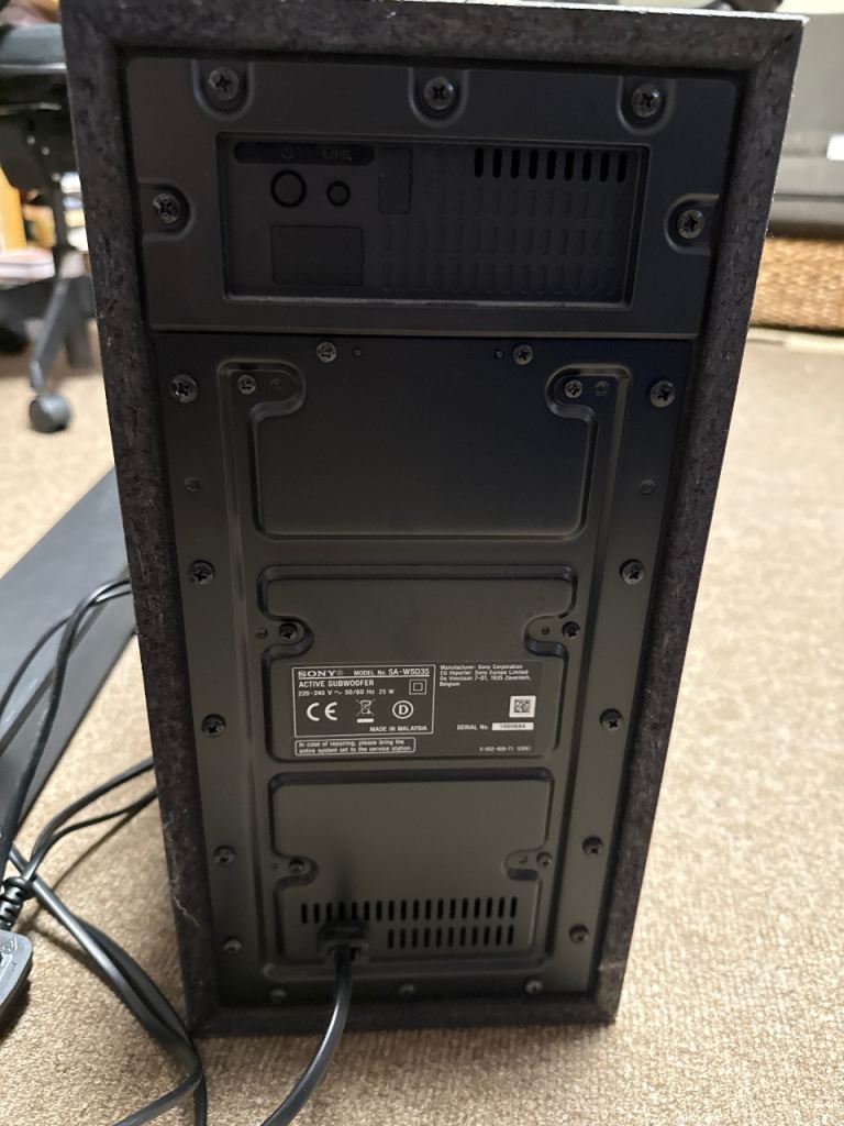 Sony subwoofer (SA-WSD35) and soundbar (SA-SD35 black) no remote control.