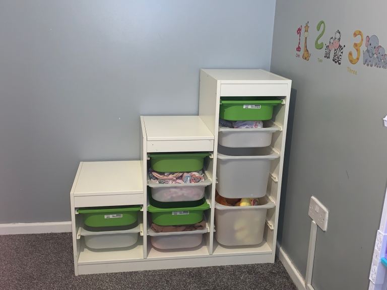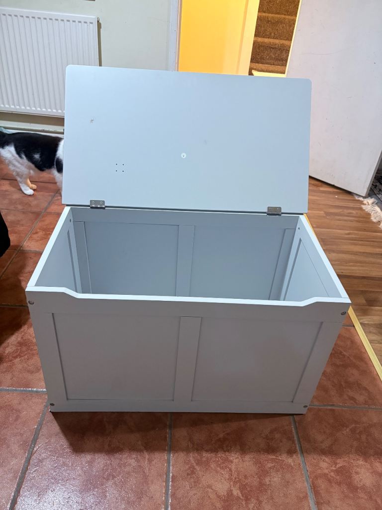 Selling a useful storage chest from IKEA. Perfect for toy storage, blankets, shoes, or hallway seating. Neutral grey colour fits most homes.