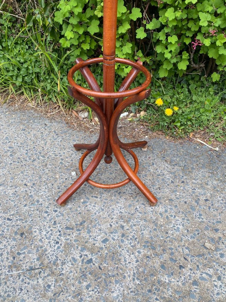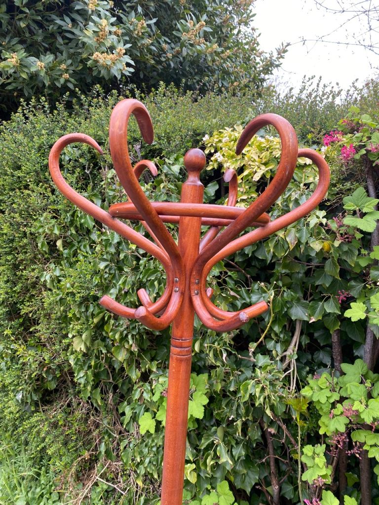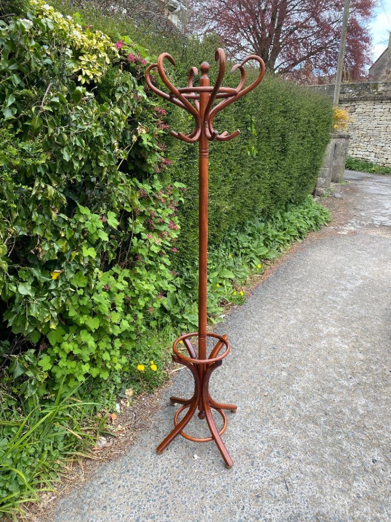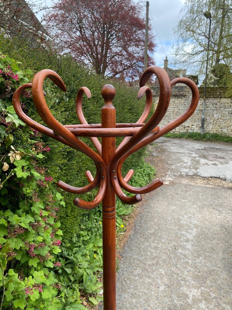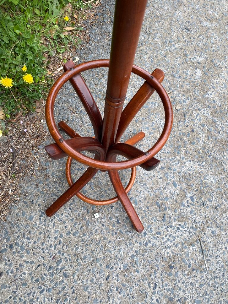 Antique Beech and Bentwood Hat and Coat Stand…still like new…rotating top with all curved hooks still perfect meaning they all can hang lots of weight if wanted…comes in 2 pieces for easy transportation…umbrella and stick stand on the bottom.