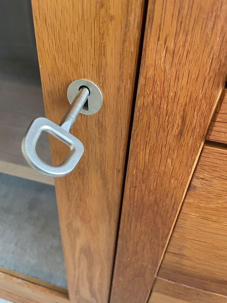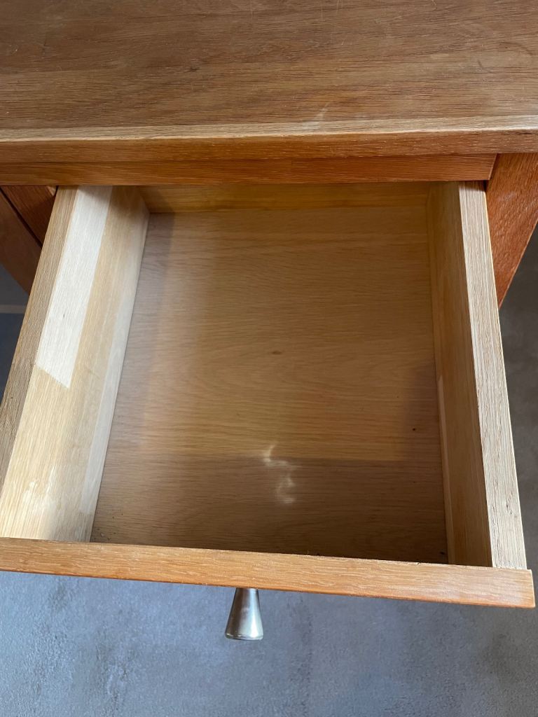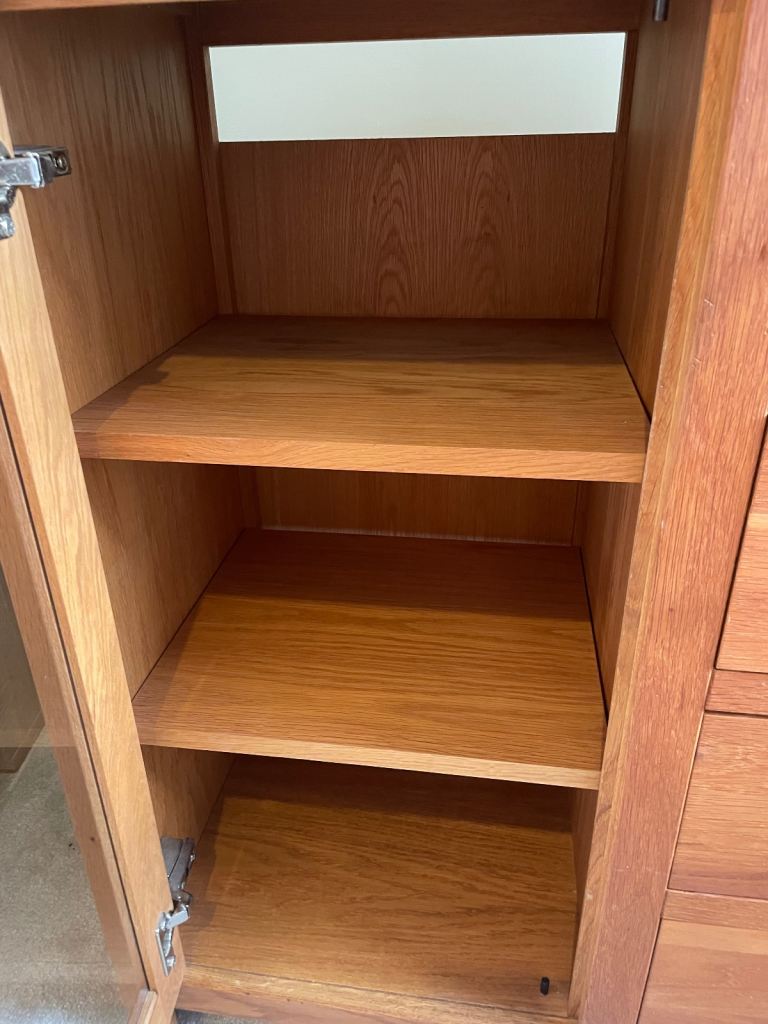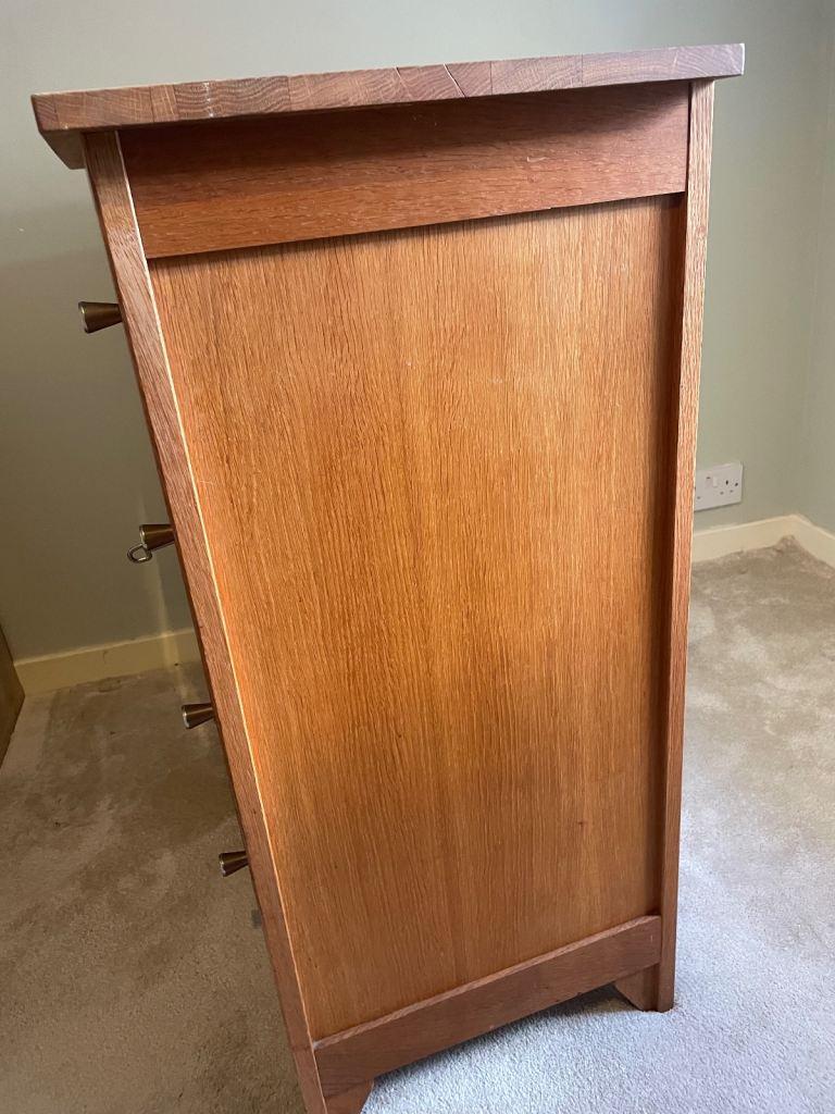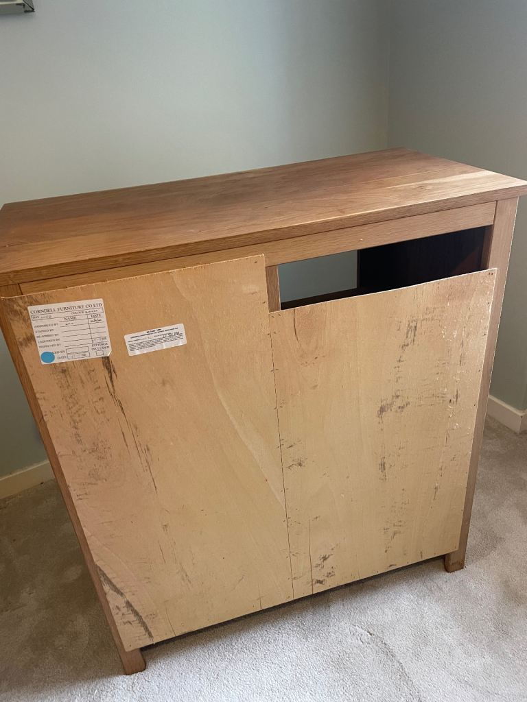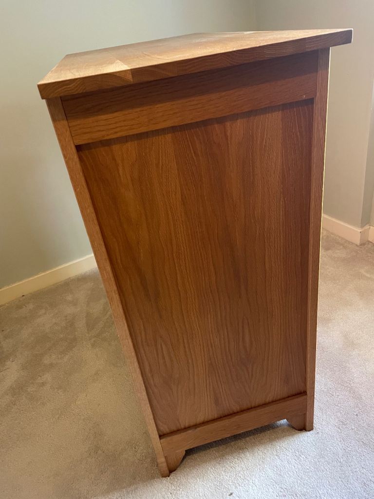 Could be used for hi-fi or any storage. We had cds in the drawers. 96cm high 84cm long and 43cm wide. Lovely unit we don’t have room for any more. For collection only. Some small marks as pictured. Solid oak frames and oak veneer.