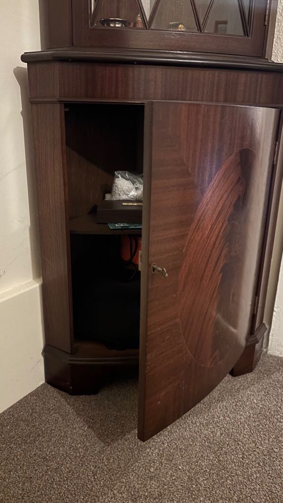 Perfect for displaying crockery, ornaments, or collectibles while saving space in a corner. Selling as I am relocating.