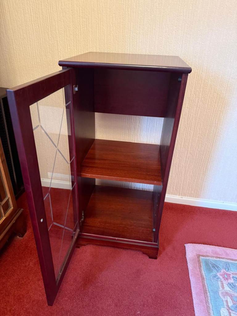 Dark wood unit with glass door.