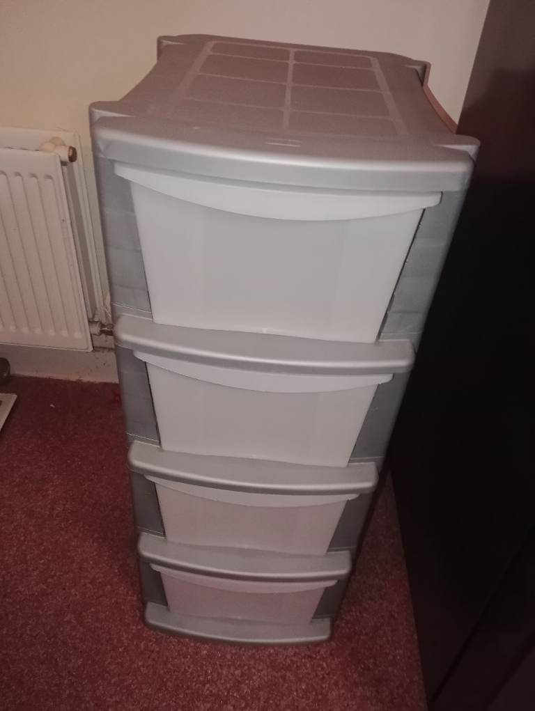 Posting for 3+ yearsGrey and White Plastic 4 Drawer Unit