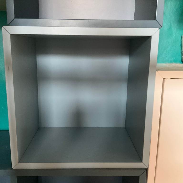 3 cubes 35 x 35 x 35 cms 2 dark grey one with door (2nd picture); 1 light grey.