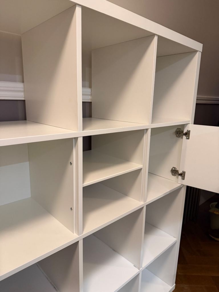 Simple design with clean lines makes easy option to display items on open shelves or add inserts to create a personalised solution with closed storage. Ikea still selling this range which means you still have option to further add/personalise this unit.