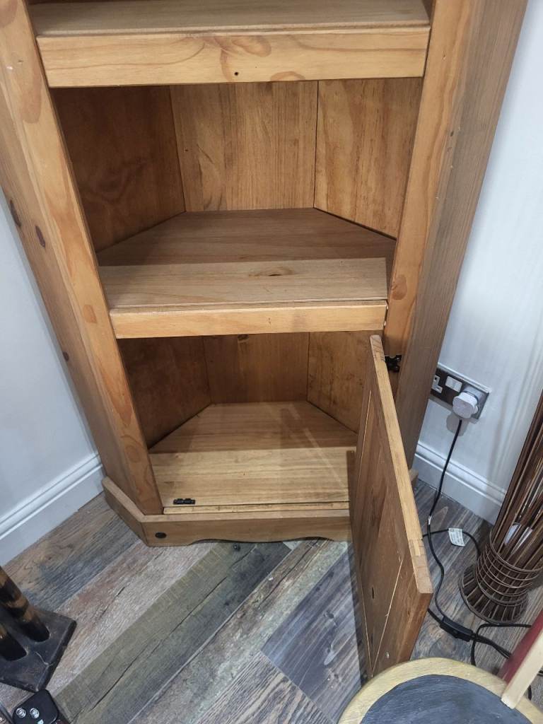 Large wooden display cabibet with storage cabinet. To is highest point its 6ft 2. Pick up only Litherland