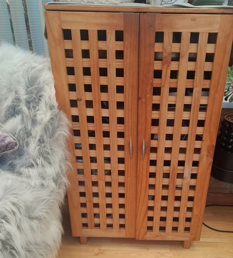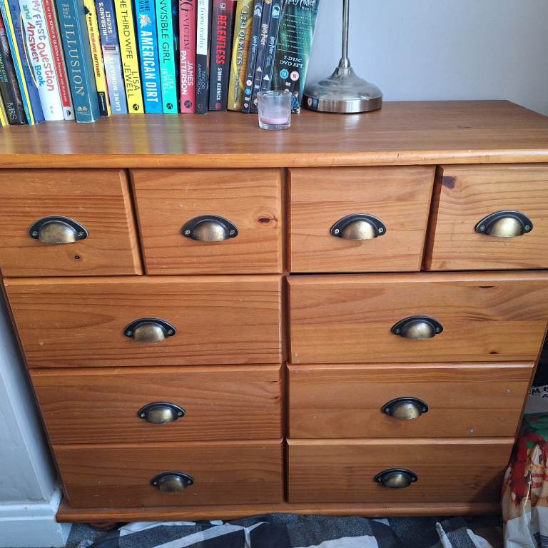 New metal handles and feet, could suite any room and is a good size for smaller places. Its in great condition with only very slight wear and tear.
