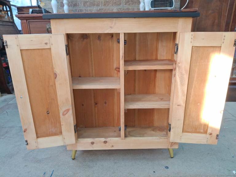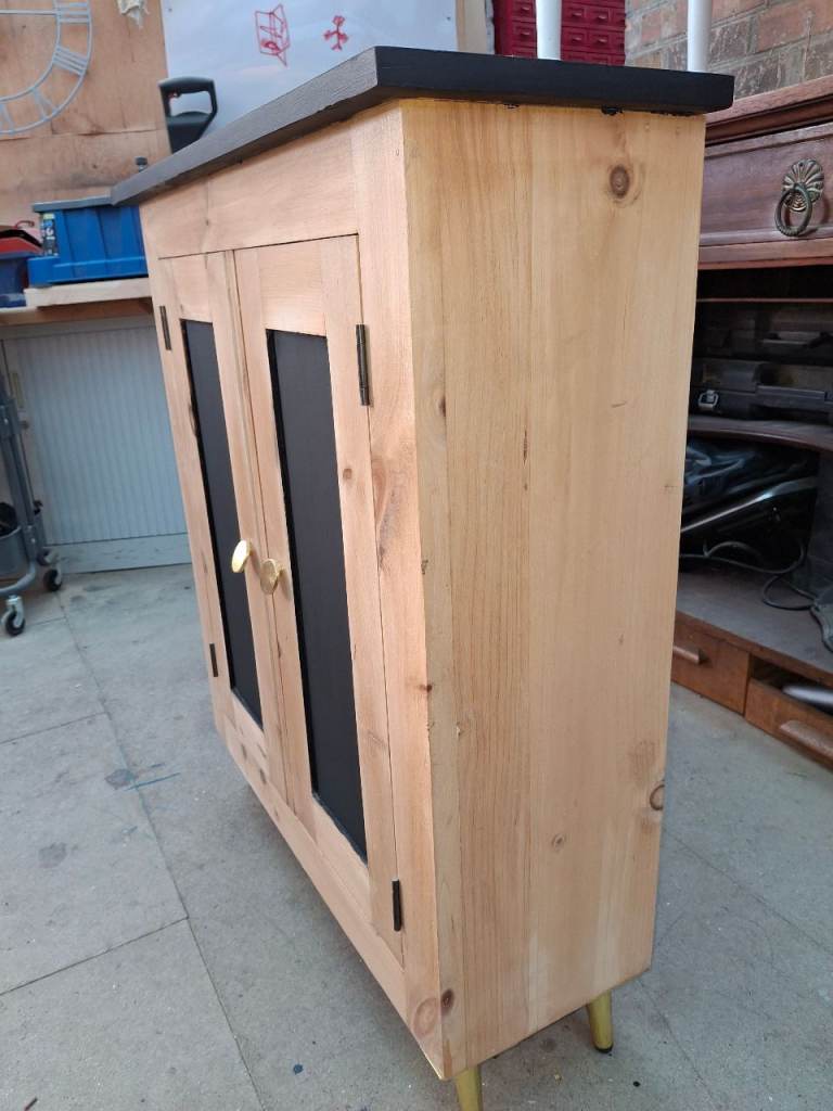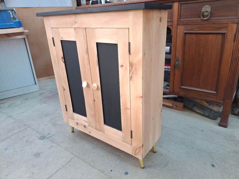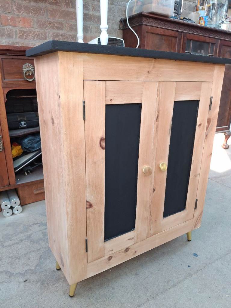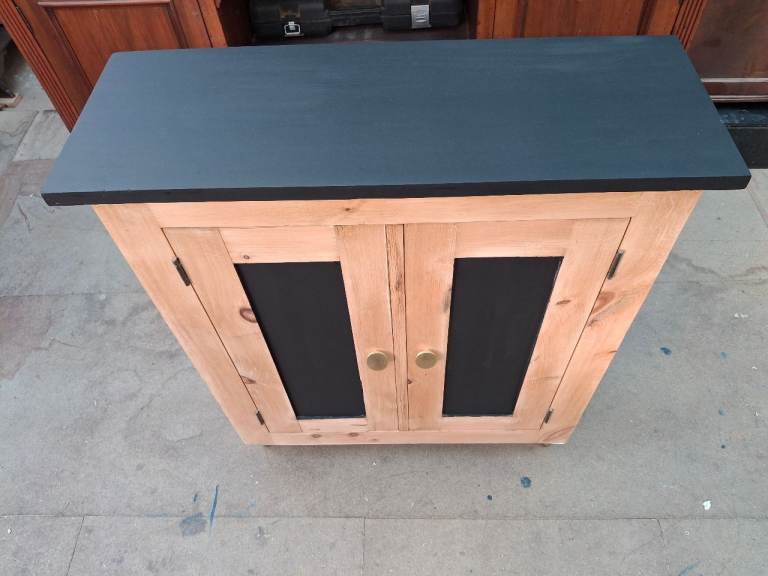 Upcycled very useful small cupboard, made from solid pine and finished in Black paint and hard matt wax top coat.