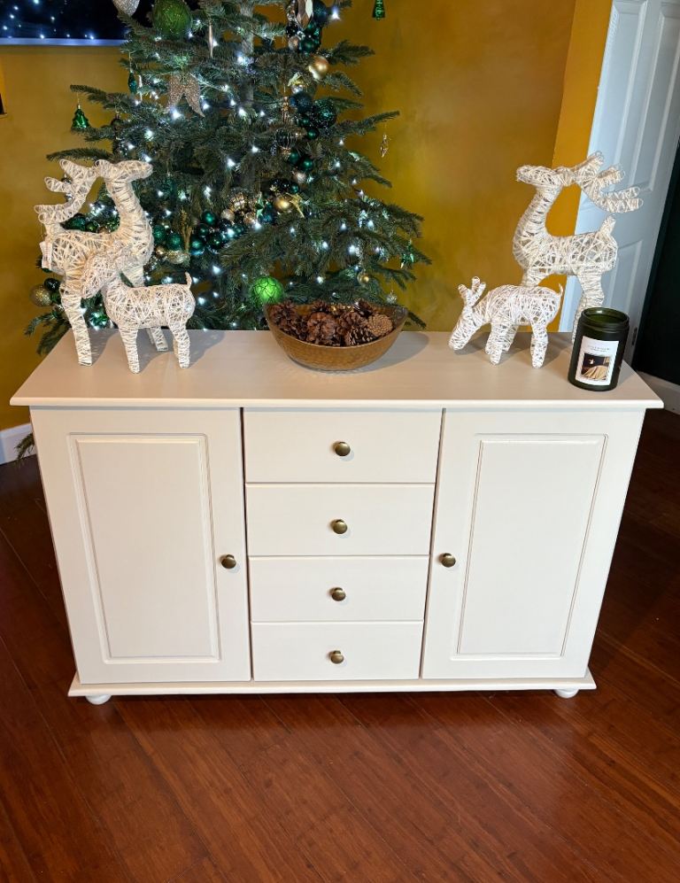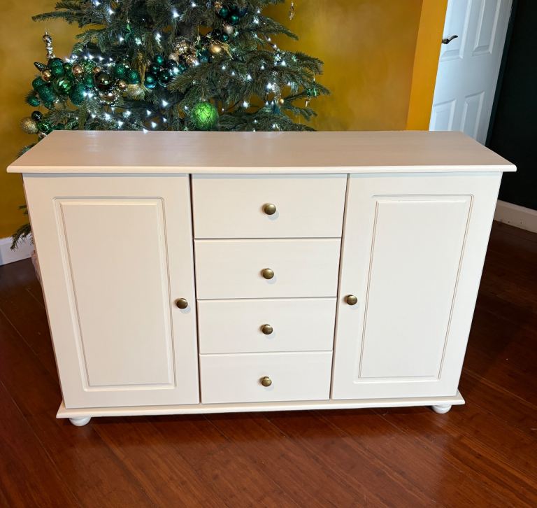 Up-cycled side unit painted in Frenchic ‘stone Rosie’ which is a beautiful neutral beige colour.