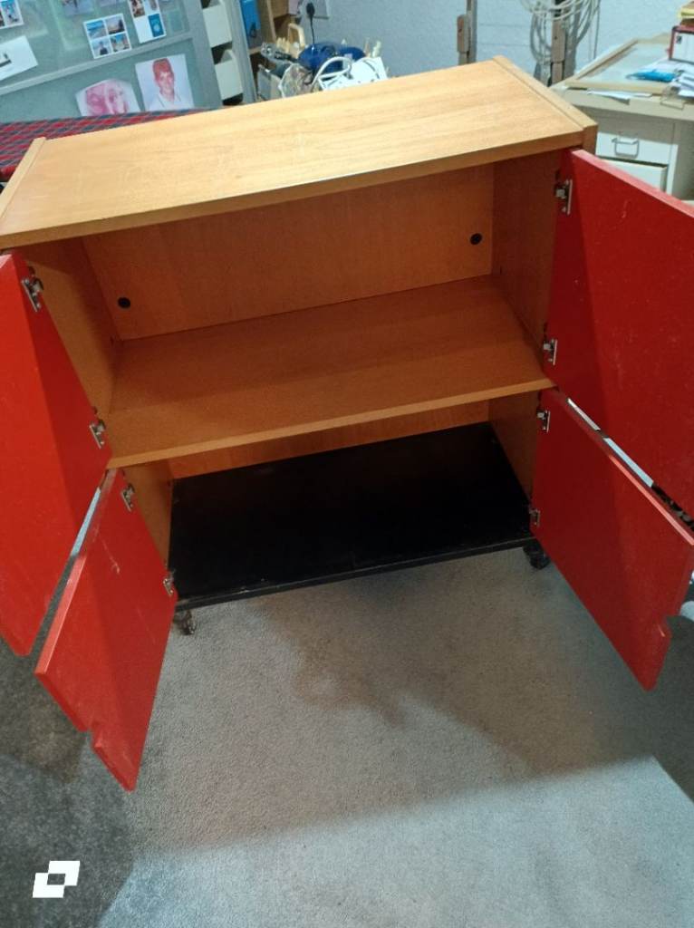 Really sturdy cupboard on wheels. Couple of ages marks but nothing serious.