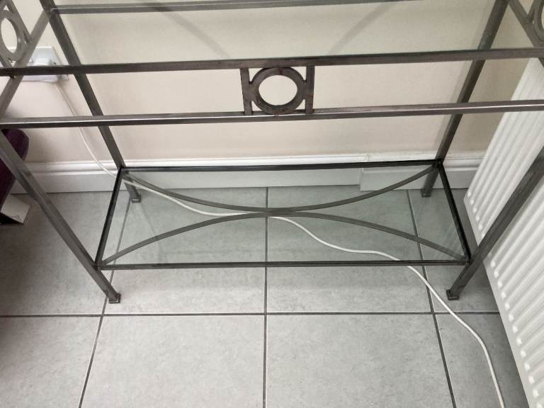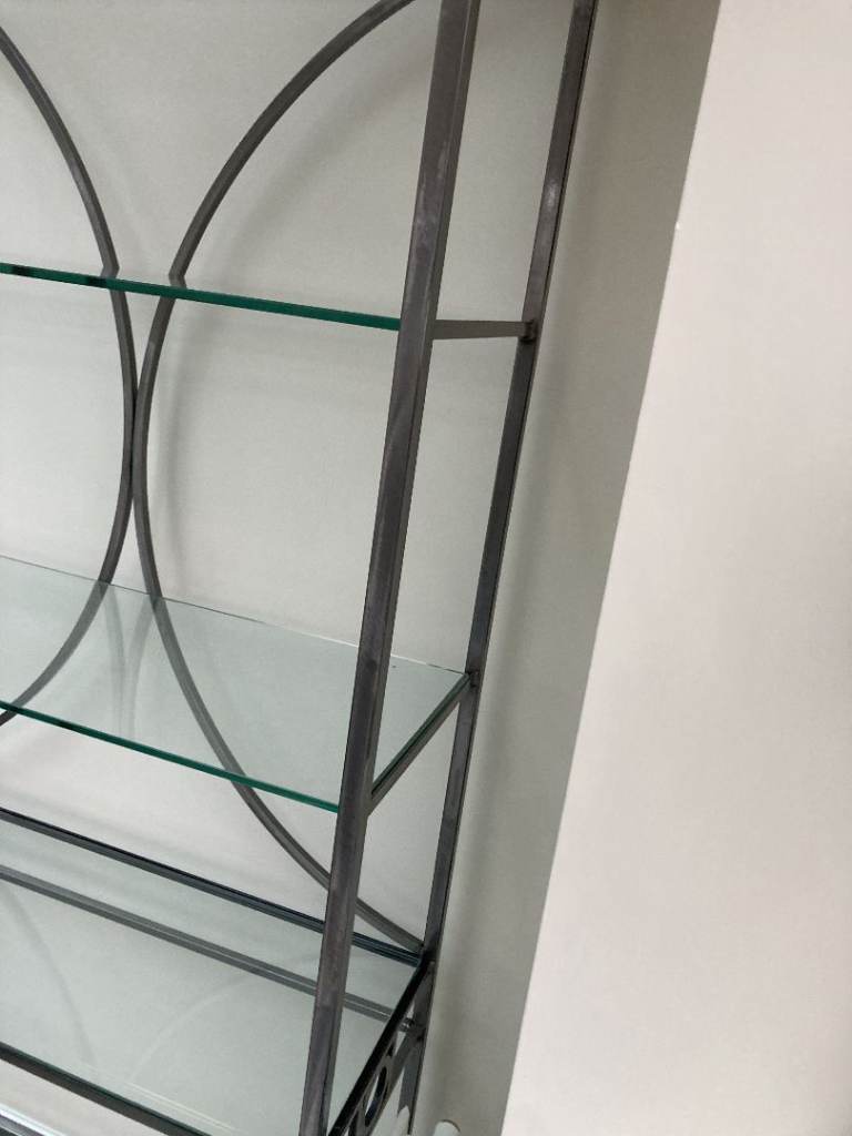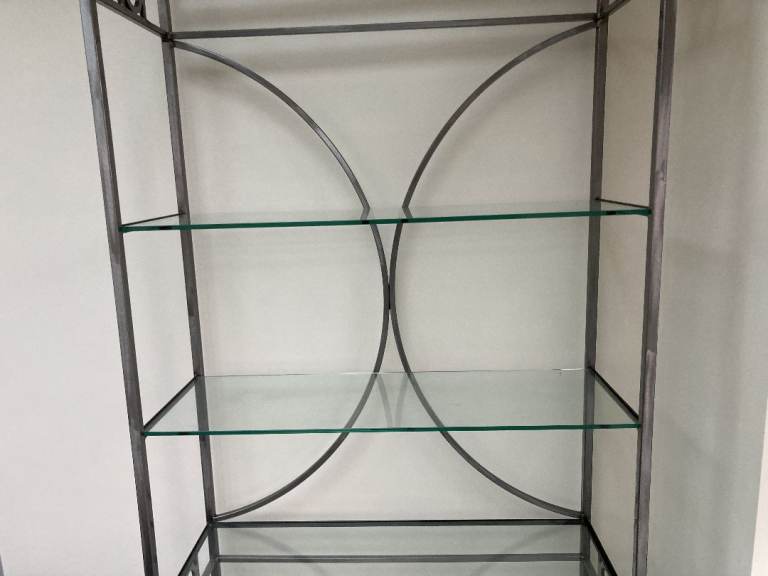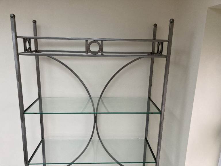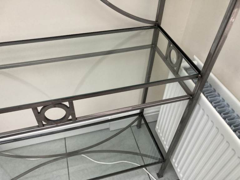 Stainless steel and glass shelving unit. this is a welded manufactured piece - not a cheap screw together type