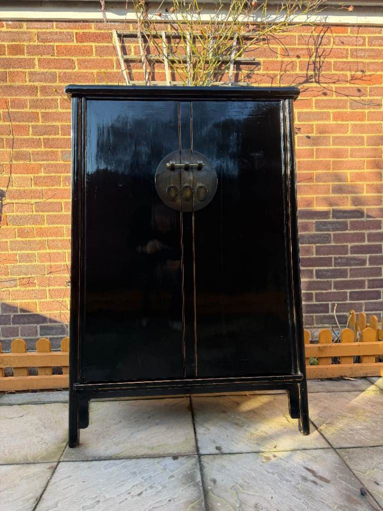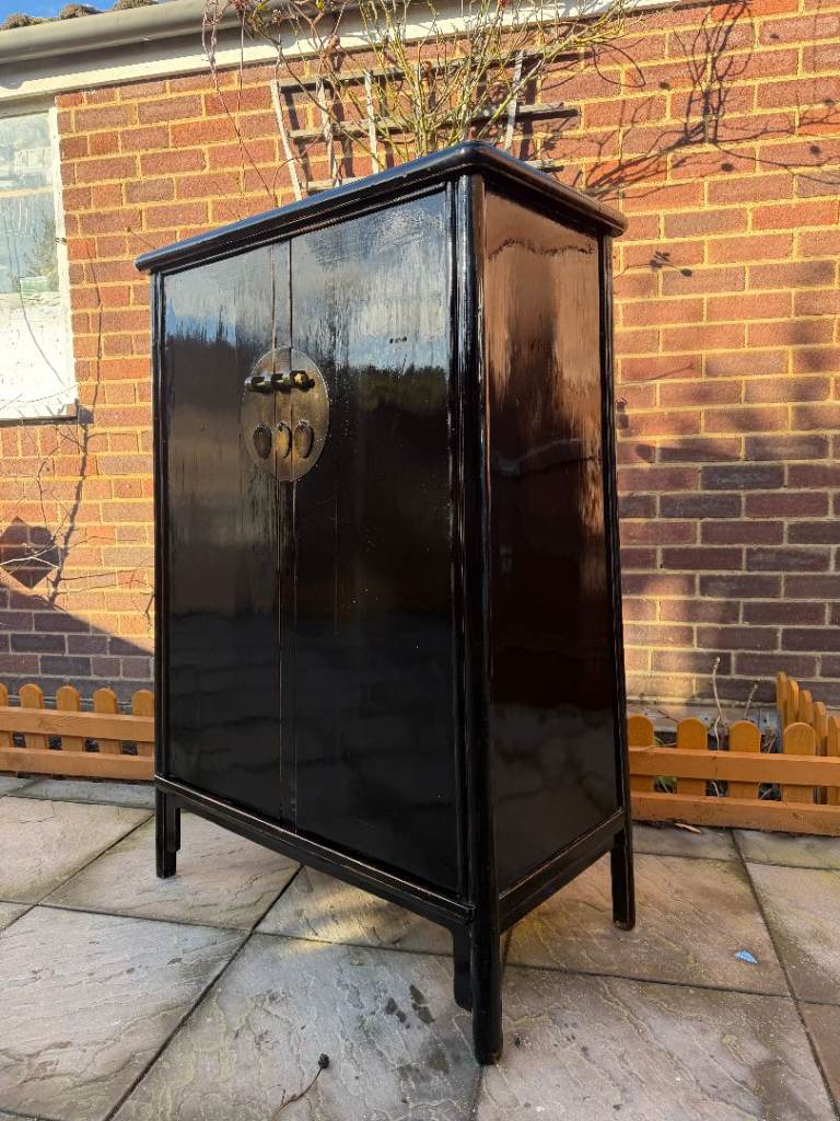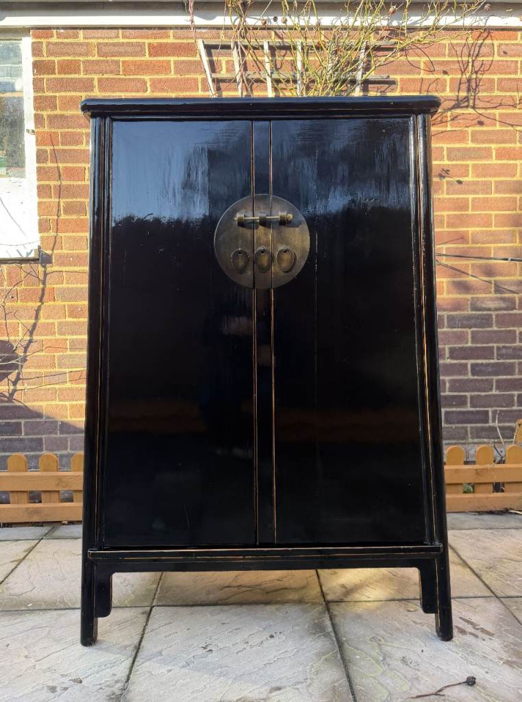 Stunning Chinese Handmade Black Lacquer Cabinet / Cupboard / Storage Unit