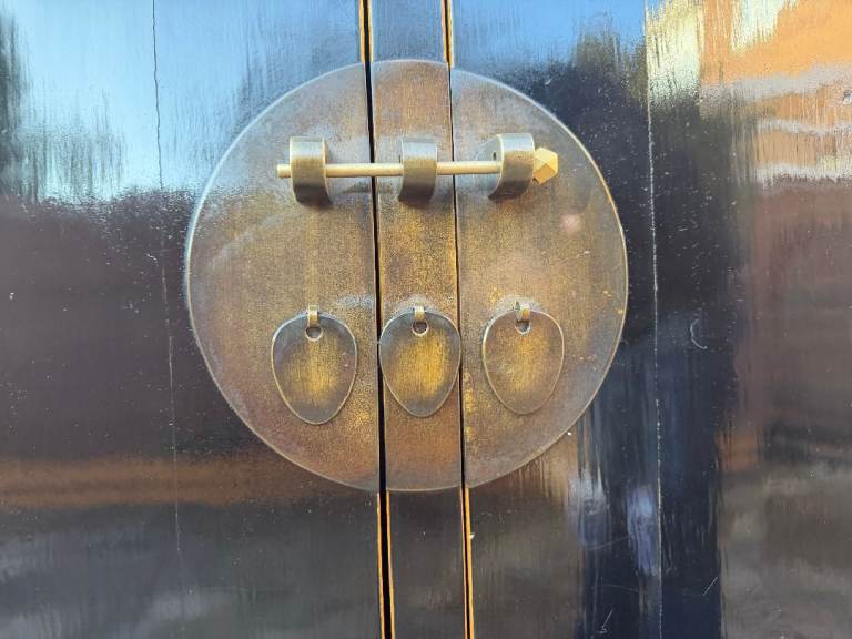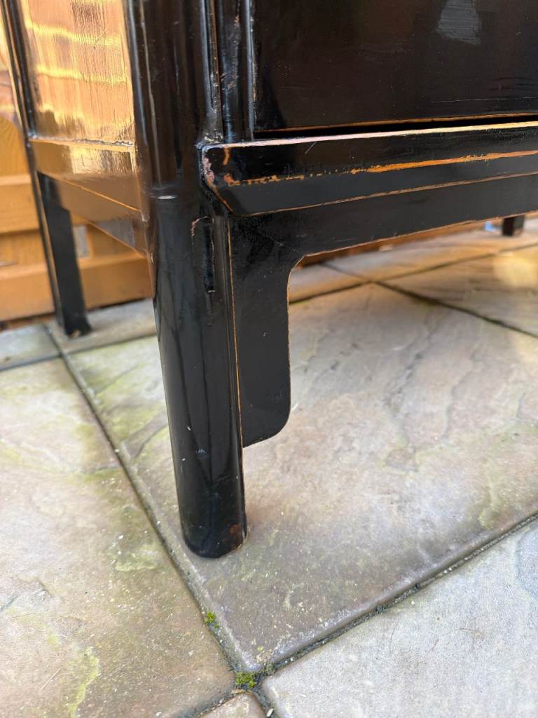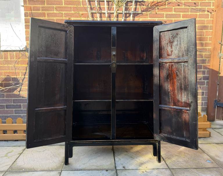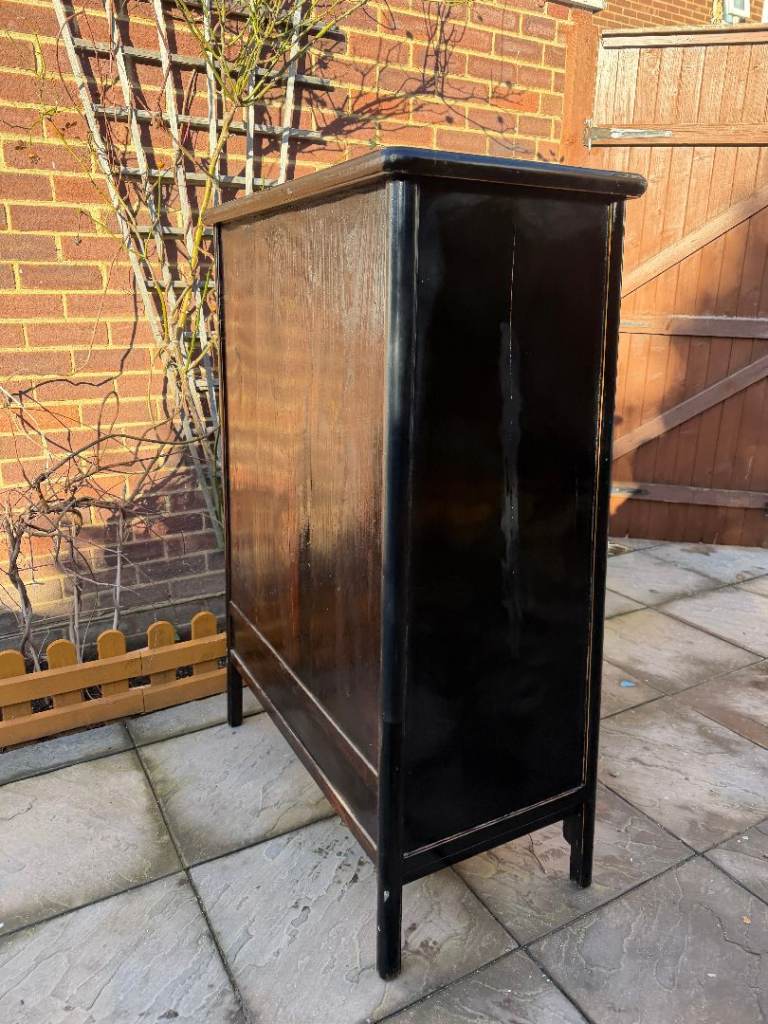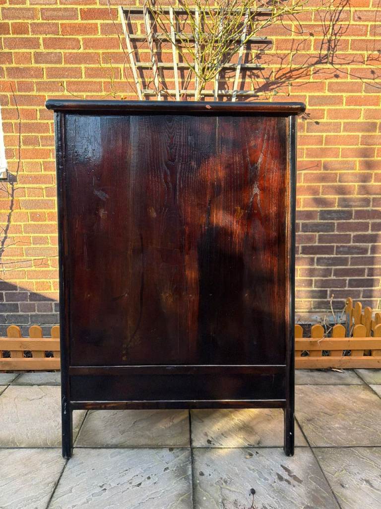 This striking Oriental Chinese Cabinet / Cupboard / Storage Unit is in very good condition. Cleaned, and was hand oiled, so there are only some chips, scratches, marks, dents due to general use. But no major issue. Please see pictures and video**