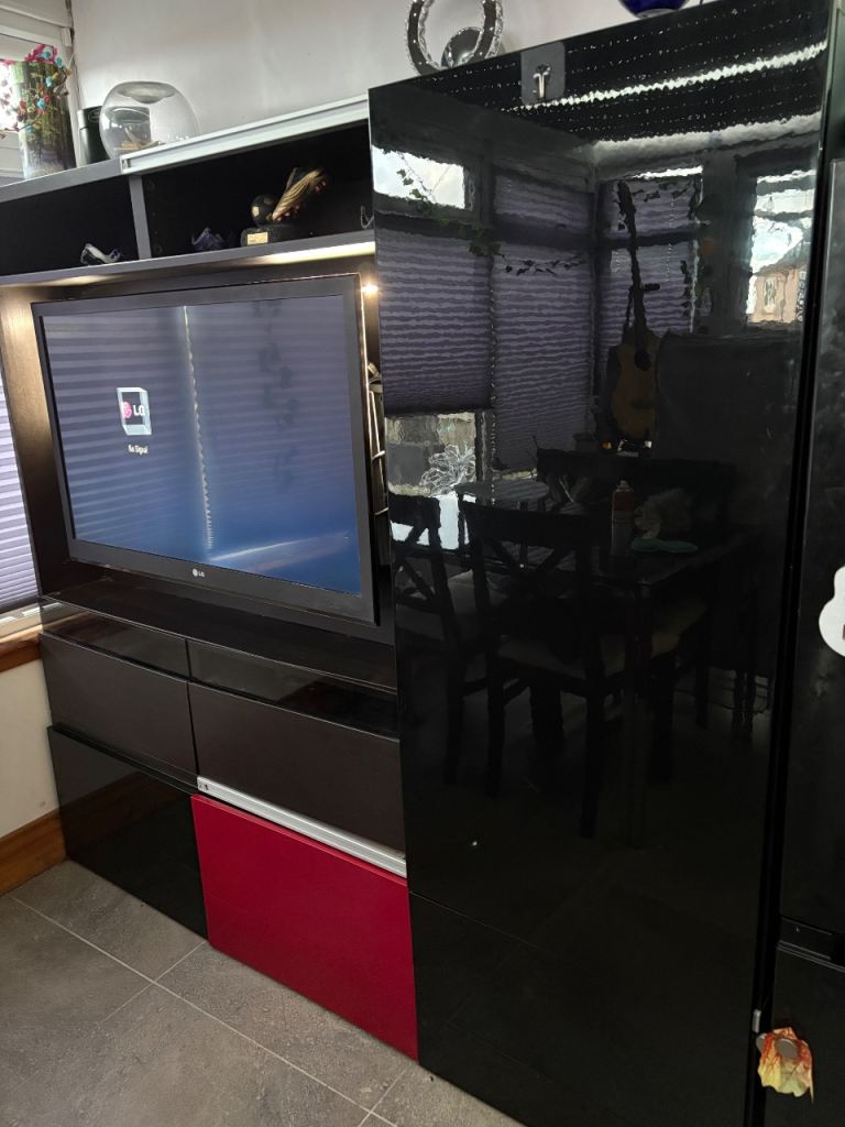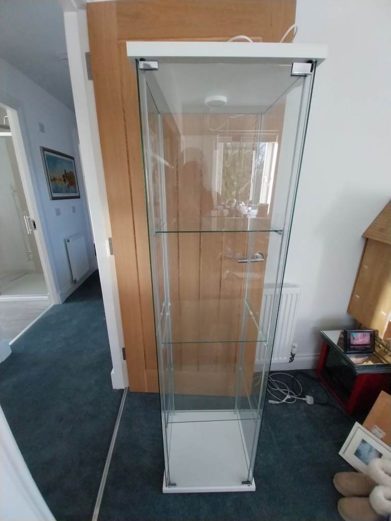 Perfect condition, upper part glass door, lower part wider with a solid door