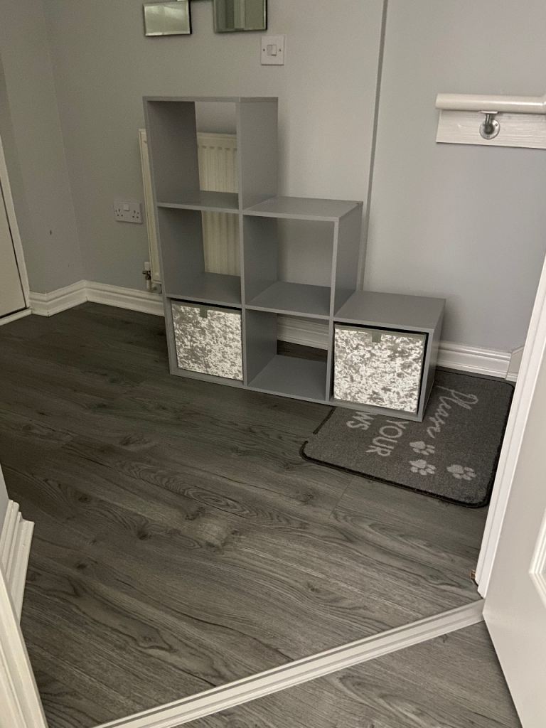 Item is freshly painted in Light Grey water based eggshell.