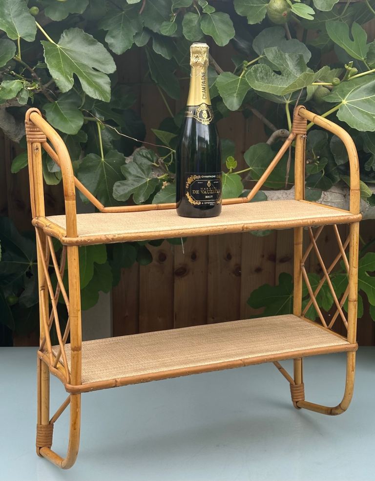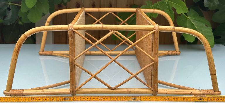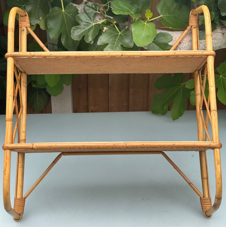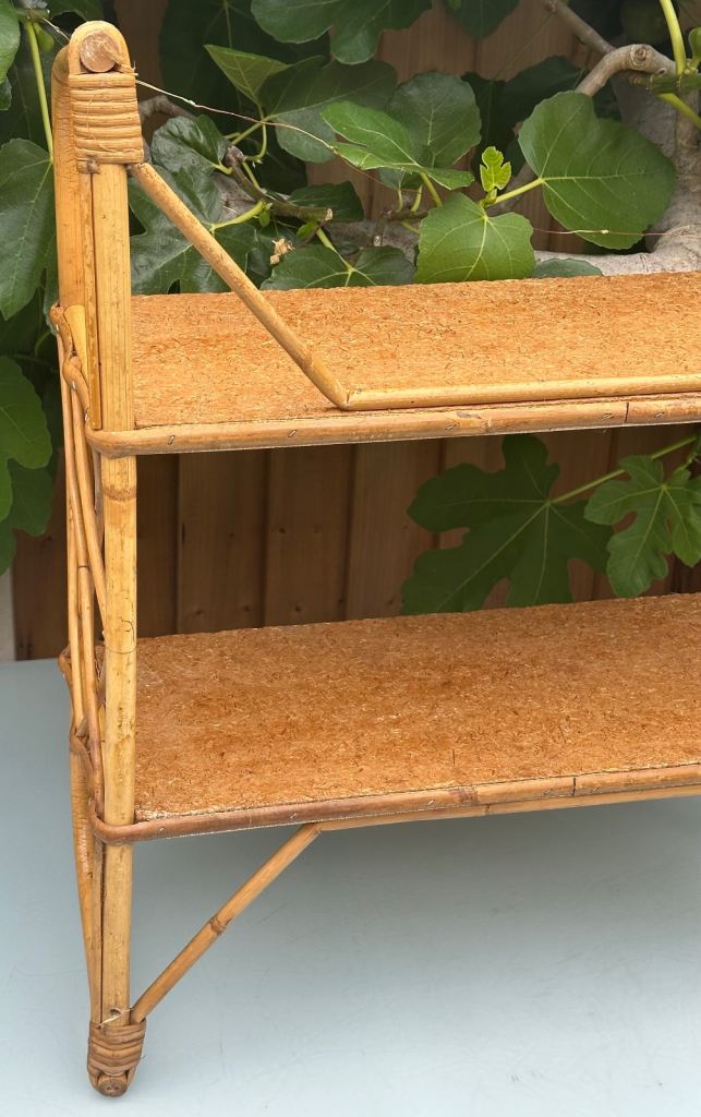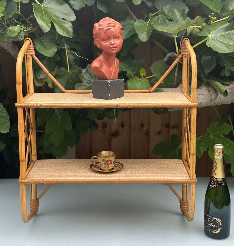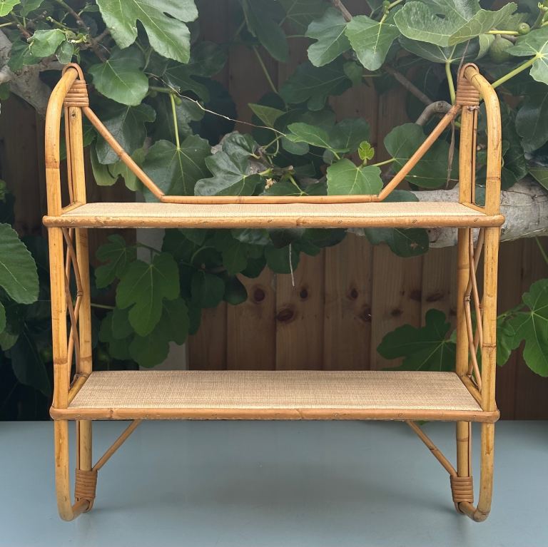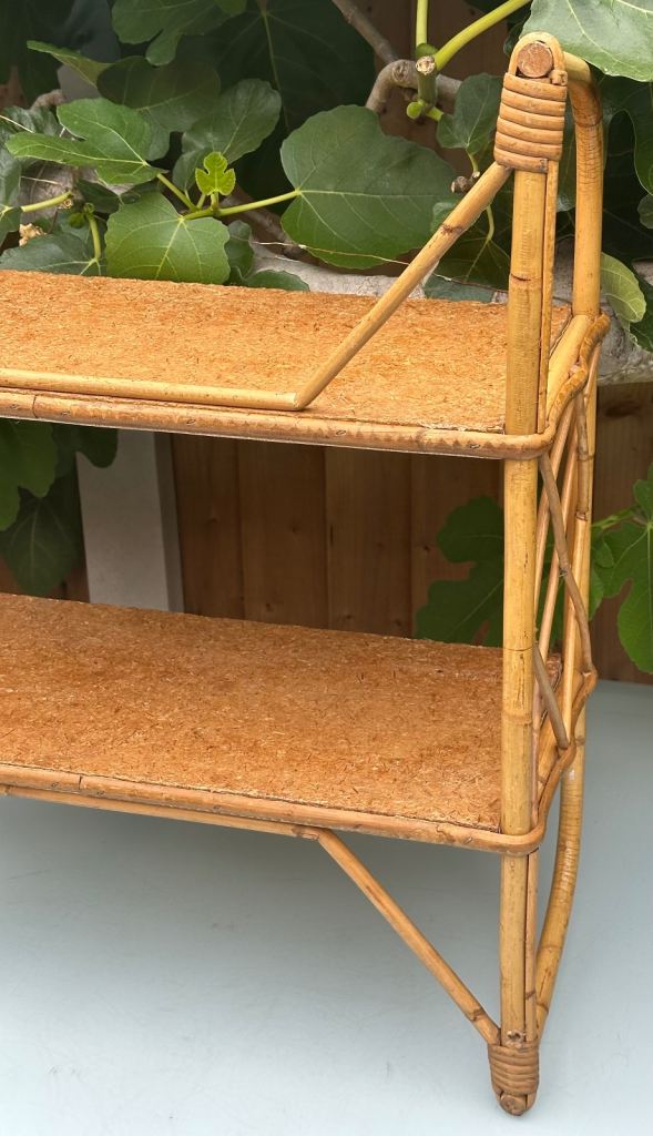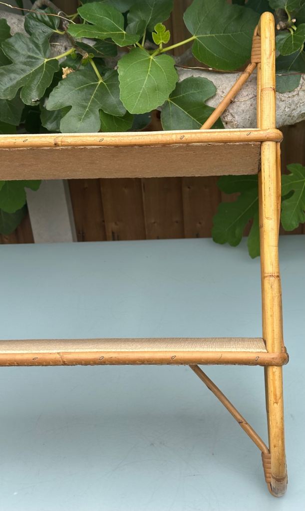 VINTAGE FRENCH BAMBOO HANGING SHELF, RETRO BAMBOO WALL SHELVES, 60cm wide 67cm tall 23cm deep/wide - 1970s - REDUCED!