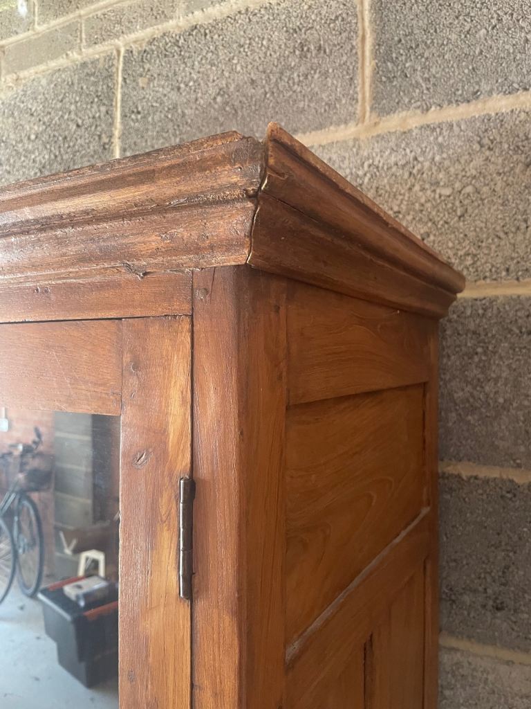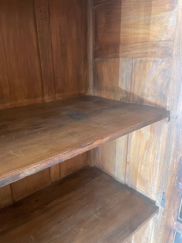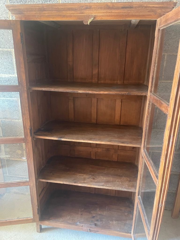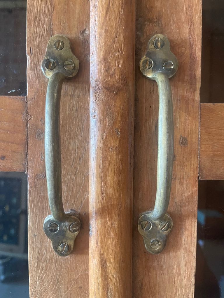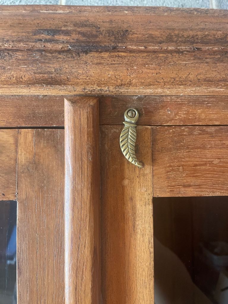 Wooden cabinet with glass doors and brass fixtures