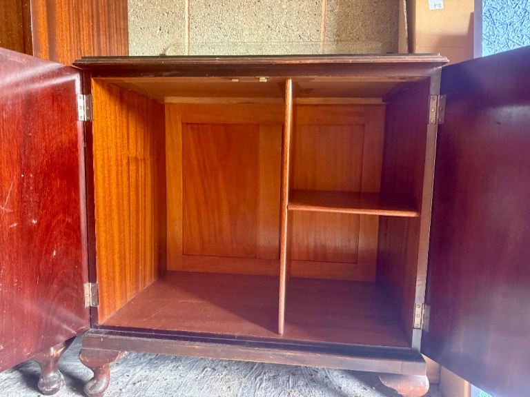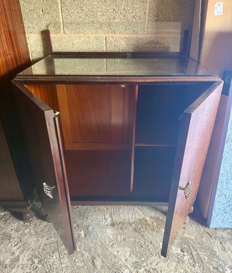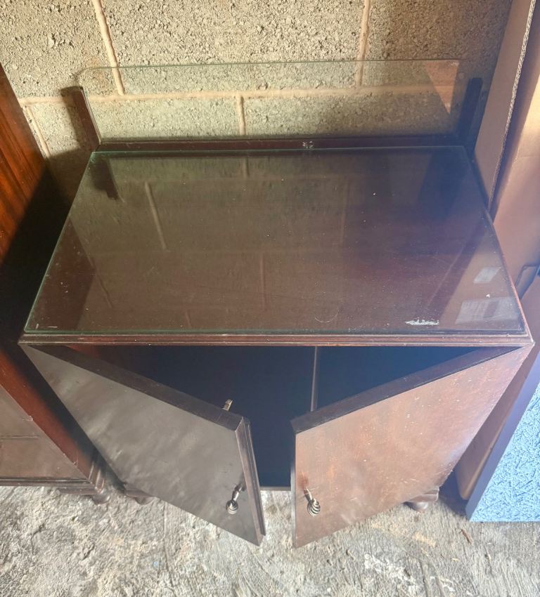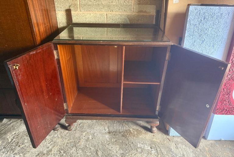 Vintage, sturdy, dark stain, hardwood drinks cabinet
