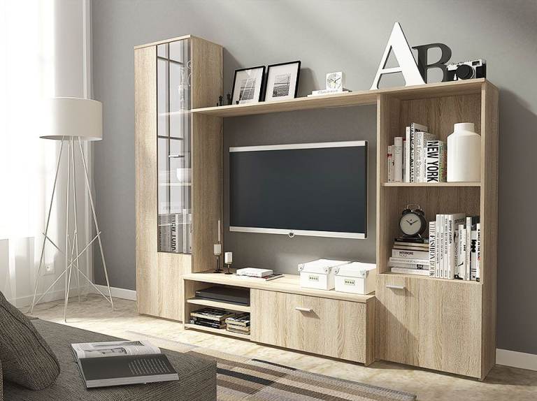 Wall unit HUGO TV stand , glassy cabinet , book stand