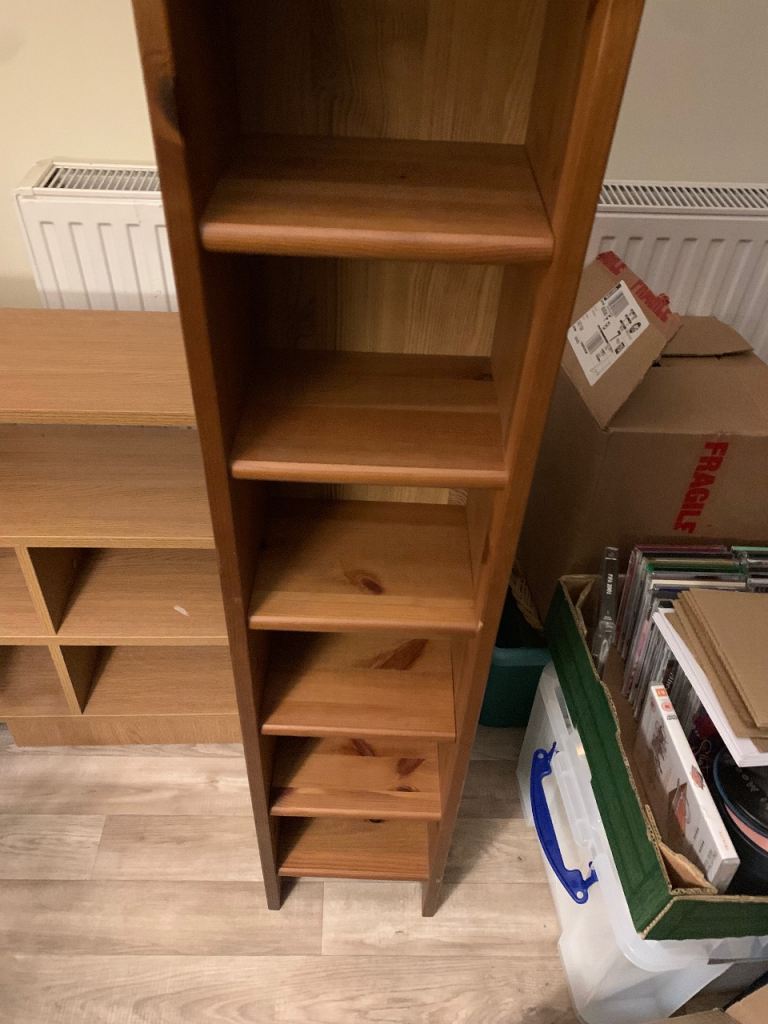 Tall, Wooden cd rack shelf. Downsizing so getting rid of it. Served us well.