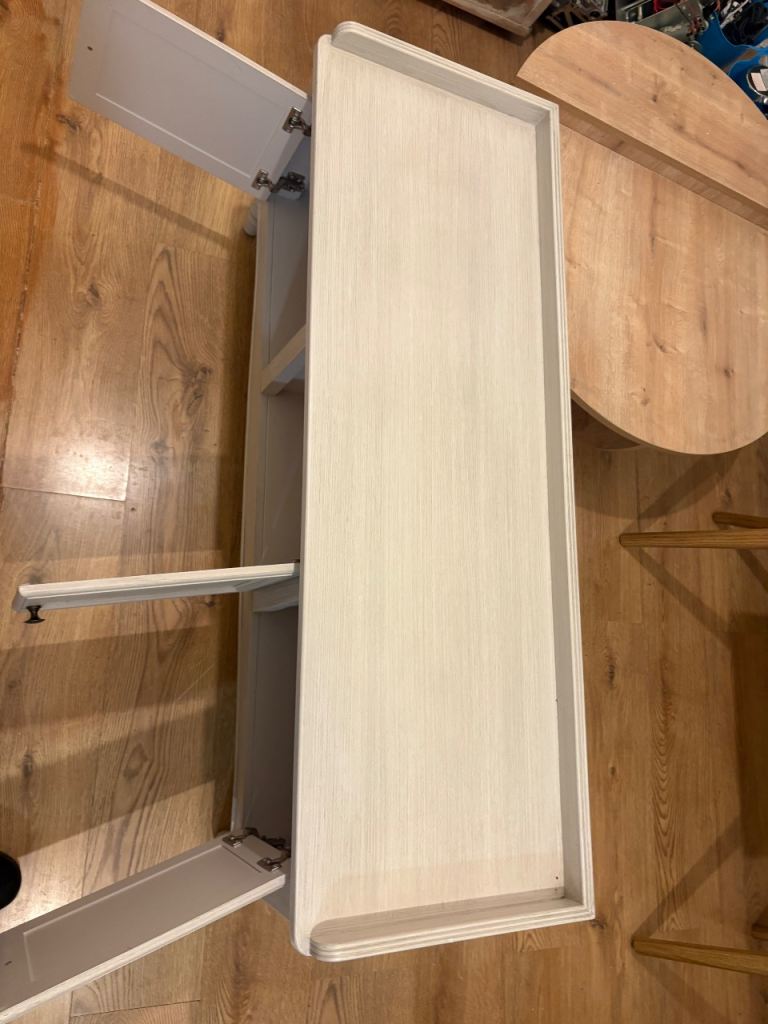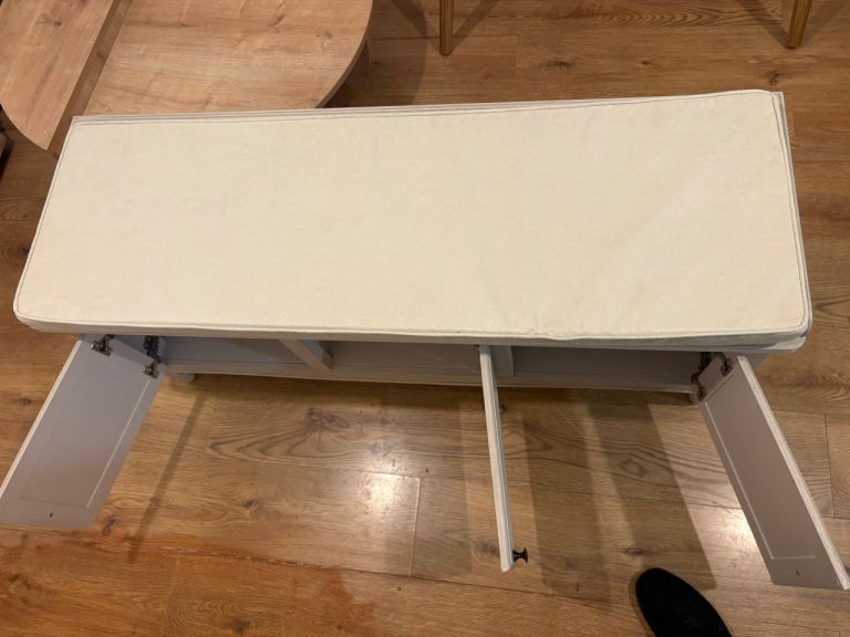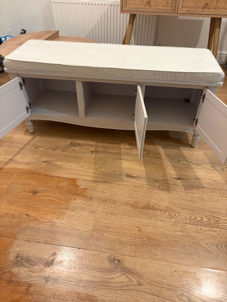 SW8 1TQ pickup. Wooden Storage Bench Three doors with open storage and Cushion H53 W121 D38cm. Can be delivered