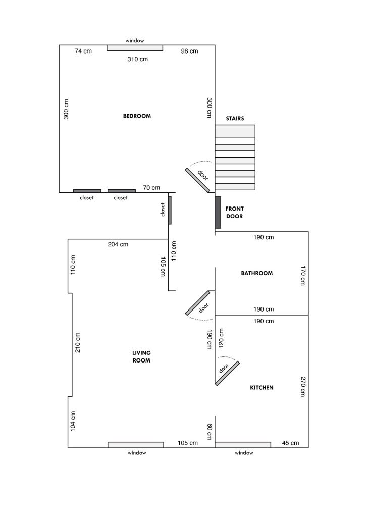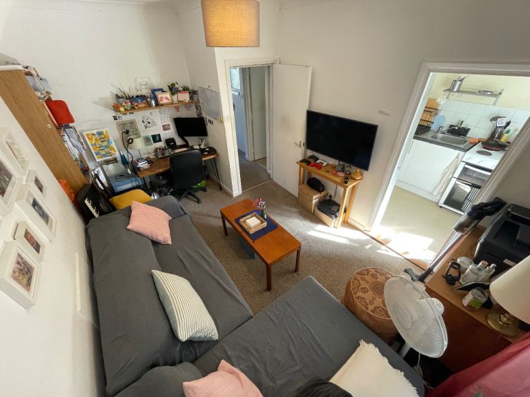 Bedroom, corridor, and kitchen ceilings are quite tall which lets a lot of light in. Living room has a dropped ceiling to reduce noise. Great storage, with a built in closet in the bedroom and corridor (second closet in bedroom contains water tanks with extra space).
