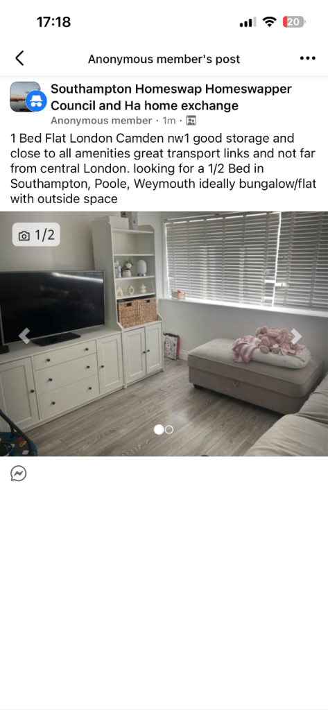 Large 1 bedroom Flat with great storage looking for a Large 2 or 3 Bedroom local to Kentih Town due to school