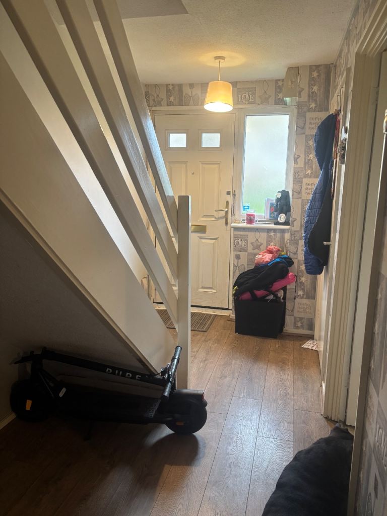 Front and back gardens. Back garden gate is accessible through an alleyway and you don’t need to walk through other people’s gardens to get to your own.